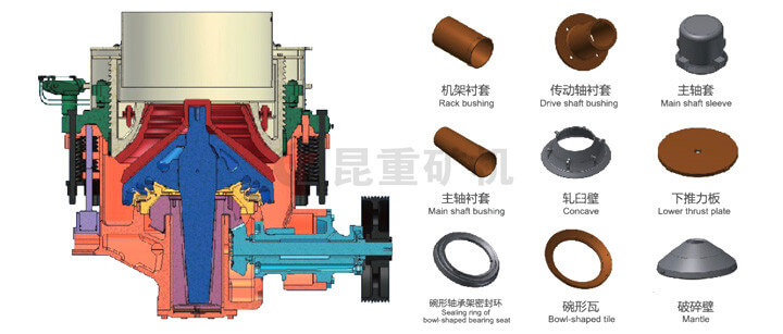 彈簧液壓圓錐式破碎機是昆重礦機結合國內外西蒙斯圓錐式破碎機的細碎技術進行優化設計而成的新型破碎產品,圓錐機的性能技術已達國外先進水平,采用了液壓清腔系統,減少了停機時間。且每種規格的破碎腔型多,用戶可根據不同的需要,選擇不同的腔型,以更好地適應用戶需要。
