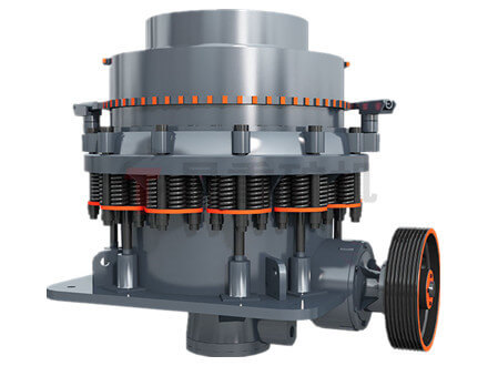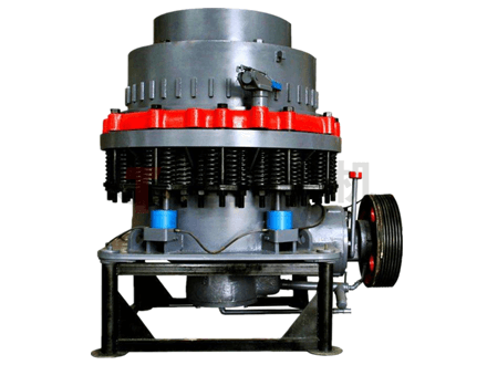 在彈簧液壓圓錐破碎機的工作過程中,電動機通過傳動裝置帶動偏心套旋轉,動錐在偏心軸套的迫動下做旋轉擺動,動錐靠近靜錐的區段即成為破碎腔,物料受到動錐和靜錐的多次擠壓和撞擊而破碎。動錐離開該區段時,該處已破碎至要求粒度的物料在自身重力作用下下落,從錐底排出。
