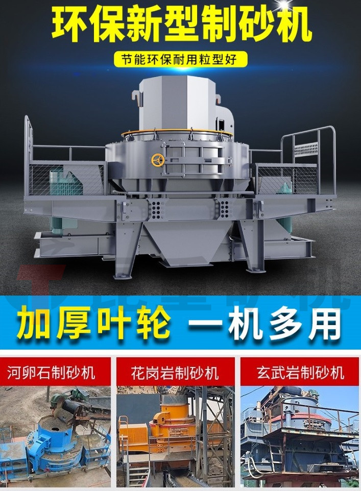 6、沖擊式制砂機(jī)合理的結(jié)構(gòu)設(shè)計(jì),使其受物料水分含量的影響小,含水量可達(dá)8%左右。因此廣泛應(yīng)用于機(jī)制砂石料、水泥、耐材、冶金、化工等行業(yè)。