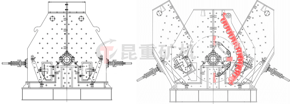 5、進料大、出料快、排料口間隙可調,保證了出料粒度。