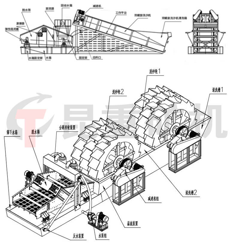1、傳統人工砂濕法加工工藝中,人工砂的洗泥、脫水采用的洗砂設備,人工砂中細砂的流失幾乎不能控制。